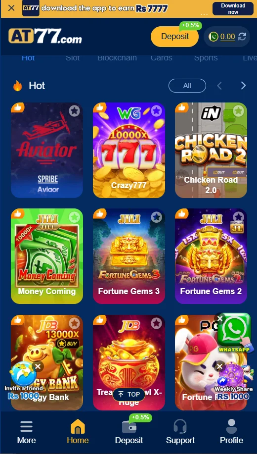 AT77 Game: Online earning apps are becoming very popular because they give people a simple way to earn money using their mobile phones. Many users like these apps because they are easy to use, fun, and do not require any special skills. Most earning apps include games, tasks, or rewards that help users make small but useful earnings in their free time. Games like teenpatti, aviator, and similar card or skill based games are especially liked because they mix entertainment with earning chances. These apps are designed for both new and experienced users, making them suitable for almost everyone.