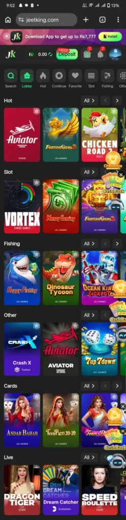 One good feature of this platform is its easy and friendly design. The menus, buttons, and game options are simple to see and use. Players can open the app, choose their favorite game, and start playing in just a few steps. The system is also made to run smoothly on many Android devices, so most users can enjoy the games without problems. The JeetKing Game also focuses on providing a better experience for users by keeping the platform simple and easy to navigate.
